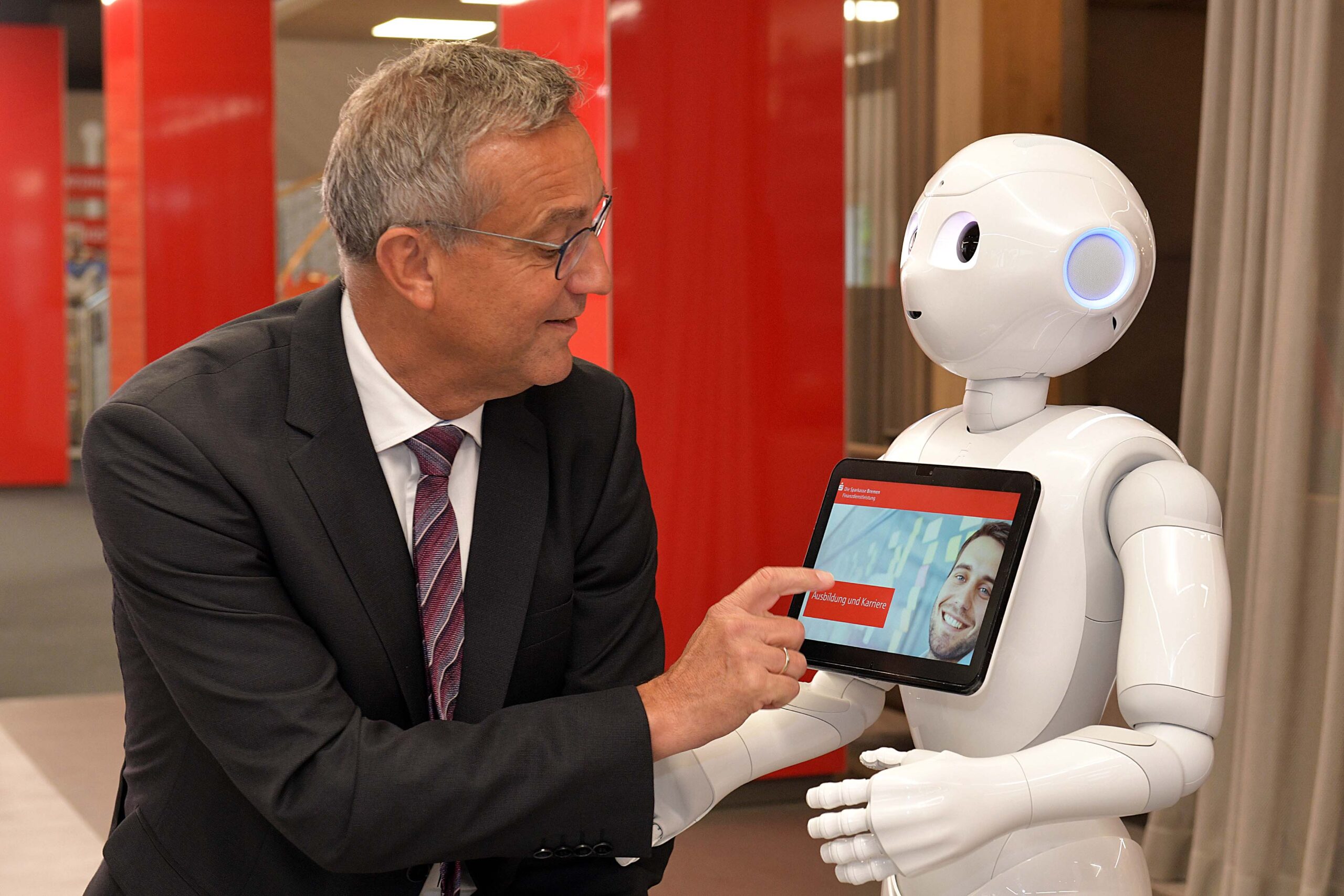 Aber auch weitere Sprachen sind wichtig, um Luna Pepper optimal einzusetzen. Das Team der Stadtteilfiliale will die Roberter-Azubine darum fit in Englisch, Russisch und Türkisch machen. Beteiligt sind die Mitarbeitenden dann auch an der Auswertung des Einsatzes – quasi einer Mitarbeiterbeurteilung von Luna. „Wir werden gemeinsam feststellen und auch lernen, wo und wie sich der Einsatz dieser künstlichen Intelligenz lohnt“, sagt Fürst.