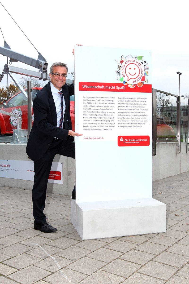 Thomas Fürst und Dr. Herbert Münder sind von der Wissenschaft zum Anfassen begeistert. „Genau so etwas braucht das Universum, so etwas braucht Bremen!“, lobt Thomas Fürst. „Sie müssen schon sehr weit ins Ausland fahren, um solch ein Exponat zu sehen“, so Fürst weiter. Dieses einzigartige Projekt ist eine Besiegelung der 17-jährigen Partnerschaft. Schon seit der Planungsphase des ScienceCenters unterstützt die Sparkasse Bremen das Universum® und ermöglicht seitdem spannende Einsichten in die Welt der Wissenschaft.