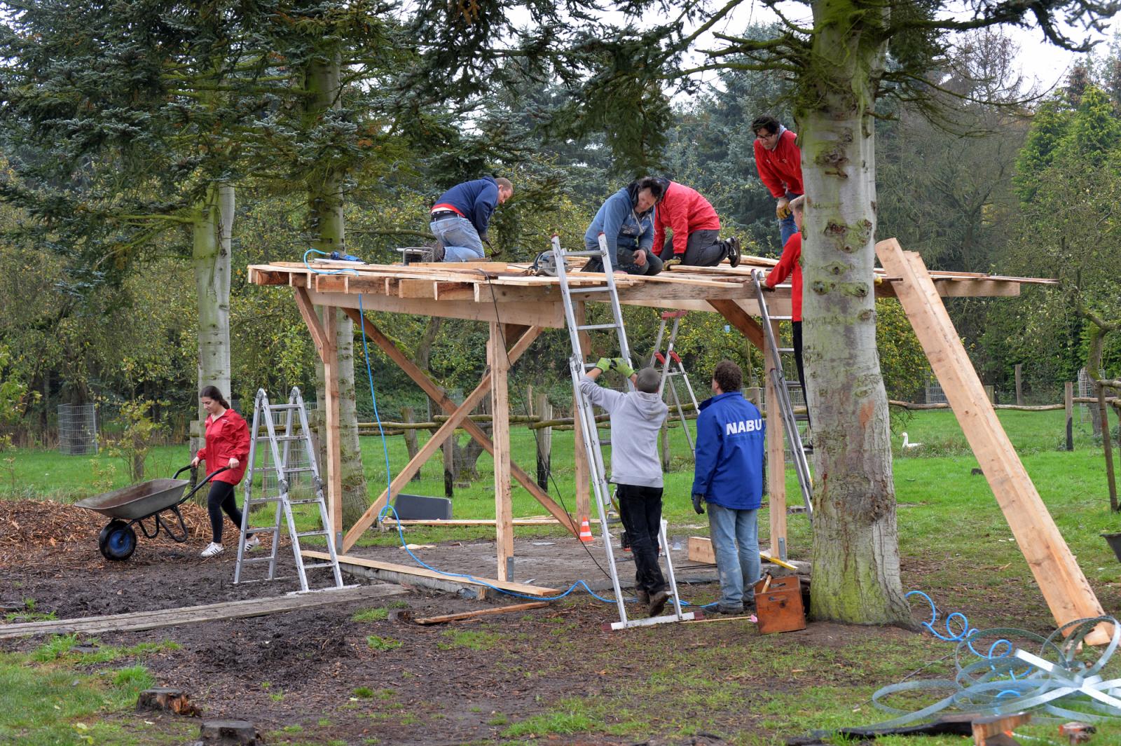 Der Aktionstag war der dritte Einsatz der Sparkasse Bremen beim NABU. „Sie leisten sehr gute Arbeit“, lobt Sören Hofmann, Geschäftsführer des NABU Bremens, den Einsatz der Mitarbeiterinnen und Mitarbeiter. Mit Spaß und jeder Menge Motivation schaffte das Team viel und erzielte schnelle Ergebnisse. Innerhalb weniger Stunden war die Umweltbildungsfläche von Gebüsch und Sträuchern befreit, sodass Platz für neue Projekte des NABU Bremens geschaffen wurde. Weiterhin zimmerte eine Gruppe einen Holzunterstand für eine Outdoor-Küche. „Alleine wären wir niemals in so kurzer Zeit so weit gekommen“, freut sich Sören Hofmann, „Wir haben jetzt ganz neue Möglichkeiten, mit Kindergruppen und den Kindern in unseren Ferienlagern zu kochen.“ Der Unterstand bietet nun Platz für einen Grill, einen Ofen und einen großen Kochtopf. Bei jedem Wetter können Kinder hier gesundes Essen selber zubereiten.